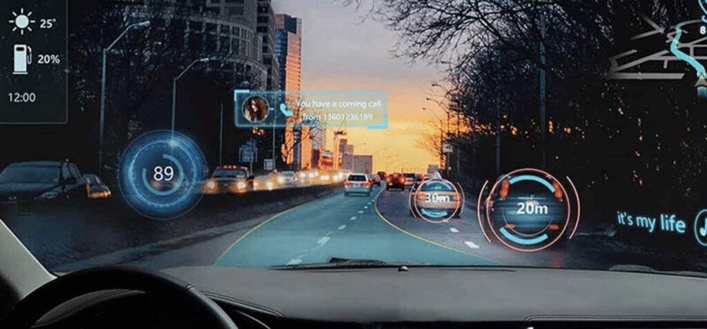 Automobili sa prozirnim ekranima na vetrobranu koriste napredni sistem proširene stvarnosti koji pretvara vetrobran u interaktivni ekran. Za razliku od klasičnih HUD sistema koji projektuju malu sliku na izdvojenu površinu, novi prozirni ekrani prikazuju veliku količinu informacija direktno na staklu, bez ometanja vožnje.