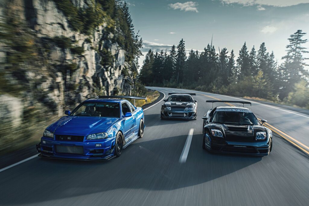 - Popularni automobili: Nissan Skyline, Toyota Supra, Honda Civic Type R, Mazda RX-7, Mitsubishi Lancer Evo.