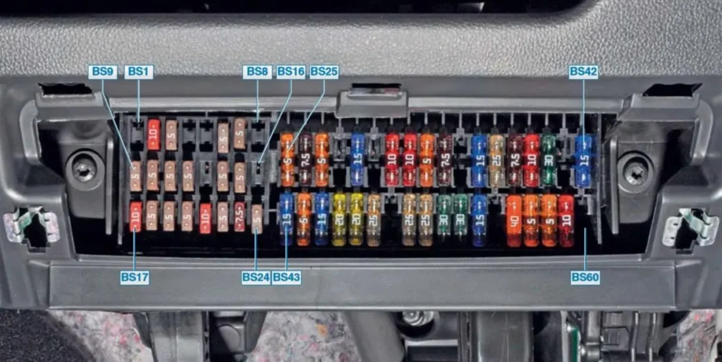 Otvorite poklopac – unutra se nalazi šema koja prikazuje funkciju svakog osigurača.